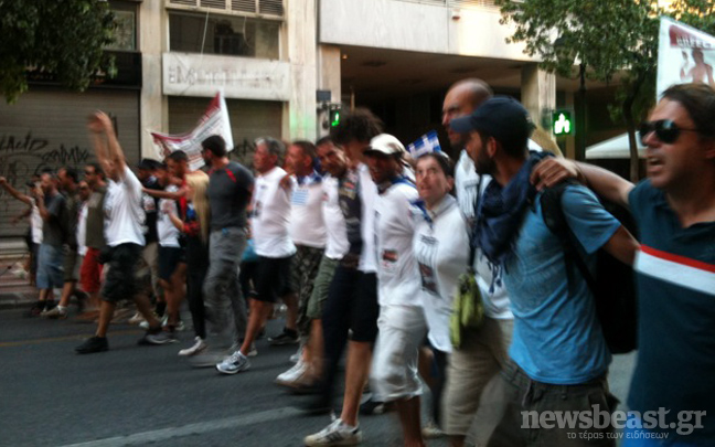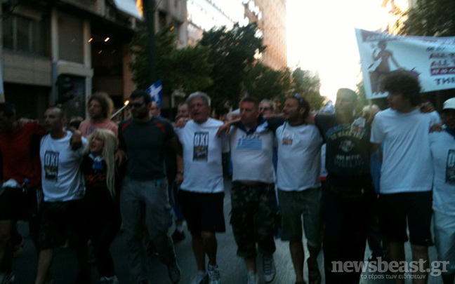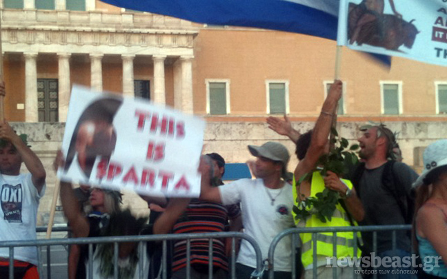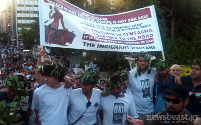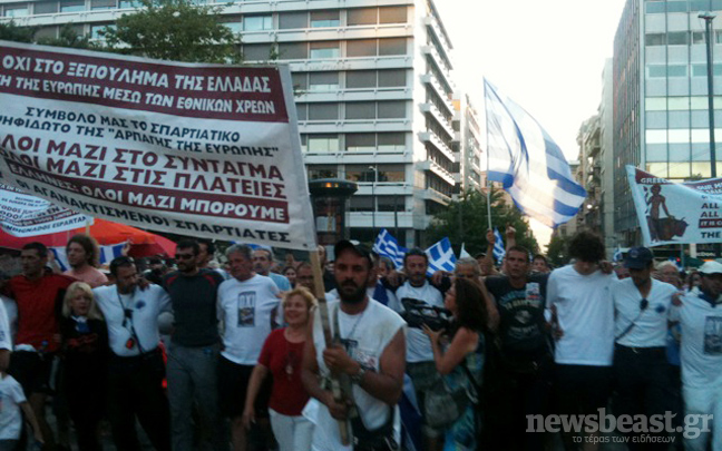 Με ζωηρές επευφημίες έγιναν δεκτοί από τους αγανακτισμένους στο Σύνταγμα οι πεζοπόροι Σπαρτιάτες !