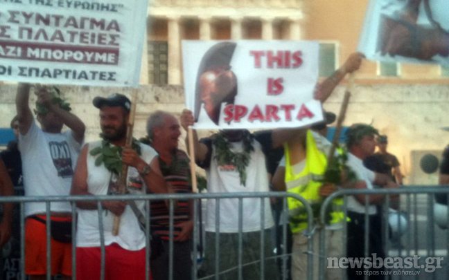 Ξεκίνησαν την Κυριακή και σήμερα έφτασαν στην πλατεία Συντάγματος. Είκοσι επτά Αγανακτισμένοι Σπαρτιάτες και ένας από την Τρίπολη ξεκίνησαν μια ειρηνική, συμβολική πορεία από το άγαλμα του Λεωνίδα στη Σπάρτη, με τερματισμό το Σύνταγμα… και τα κατάφεραν!Οι συγκεντρωμένοι διαδηλωτές, που ανανέωσαν το καθημερινό τους ραντεβού για 29η μέρα υποδέχτηκαν την ομάδα των Αγανακτισμένων Σπαρτιατών, οι οποίοι φορούσαν κλαδιά δάφνης στο κεφάλι με χειροκροτήματα και τους συνόδευσαν στα τελευταία μέτρα της διαδρομής τους.