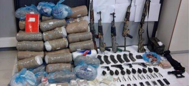Οι τέσσερις Αλβανοί, ηλικίας 27, 25, 38 και 19 ετών, είχαν στην κατοχή τους, όχι μόνο 8.564 γραμμάρια κάνναβης υδροπονικής καλλιέργειας, αλλά και 26 γραμμάρια κοκαΐνης, 1.960 γραμμάρια άγνωστης νοθευτικής ουσίας, 4 KALASNIKOF με 9 γεμιστήρες, 5 χειροβομβίδες αμυντικού τύπου με πλήρη γόμωση καθώς και τους μηχανισμούς περόνης των εν λόγω όπλων.