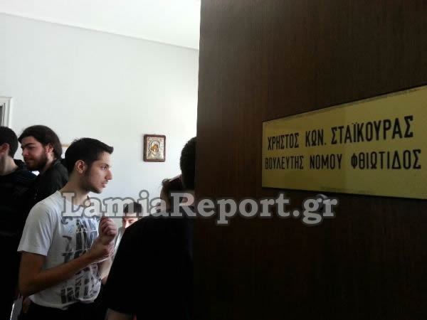 Κατάληψη στο βουλευτικό γραφείο της Λαμίας του Αναπληρωτή Υπουργού Οικονομικών και βουλευτή του νομού Φθιώτιδας Χρήστου Σταϊκούρα, κάνουν αυτή την ώρα οι φοιτητές του πανεπιστημίου Στερεάς, στο πλαίσιο μιας σειράς κινητοποιήσεων που πραγματοποιούν διαμαρτυρόμενοι για τα χάλια του σχεδίου "Αθηνά".