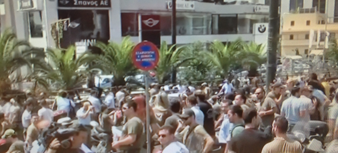 Λίγο μετά τις 12:00 έφτασε έξω από τα γραφεία του κόμματος η μηχανοκίνητη πορεία των δημοτικών αστυνομικών και ζήτησαν να έχουν συνάντηση με τον γραμματέα του κόμματος προκειμένου να του δώσουν ψήφισμα.